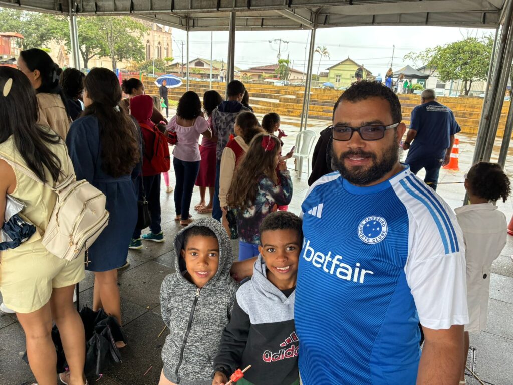 Entre os participantes estava Dori Edson de Jesus Campos, que levou os filhos Miguel Elias, de 9 anos, e Pedro Augusto, de 7 anos. Para ele, a iniciativa reforça a importância de formar uma geração mais consciente e proativa.