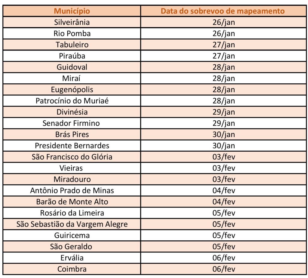 Confira a data do mapeamento aéreo no seu município:
