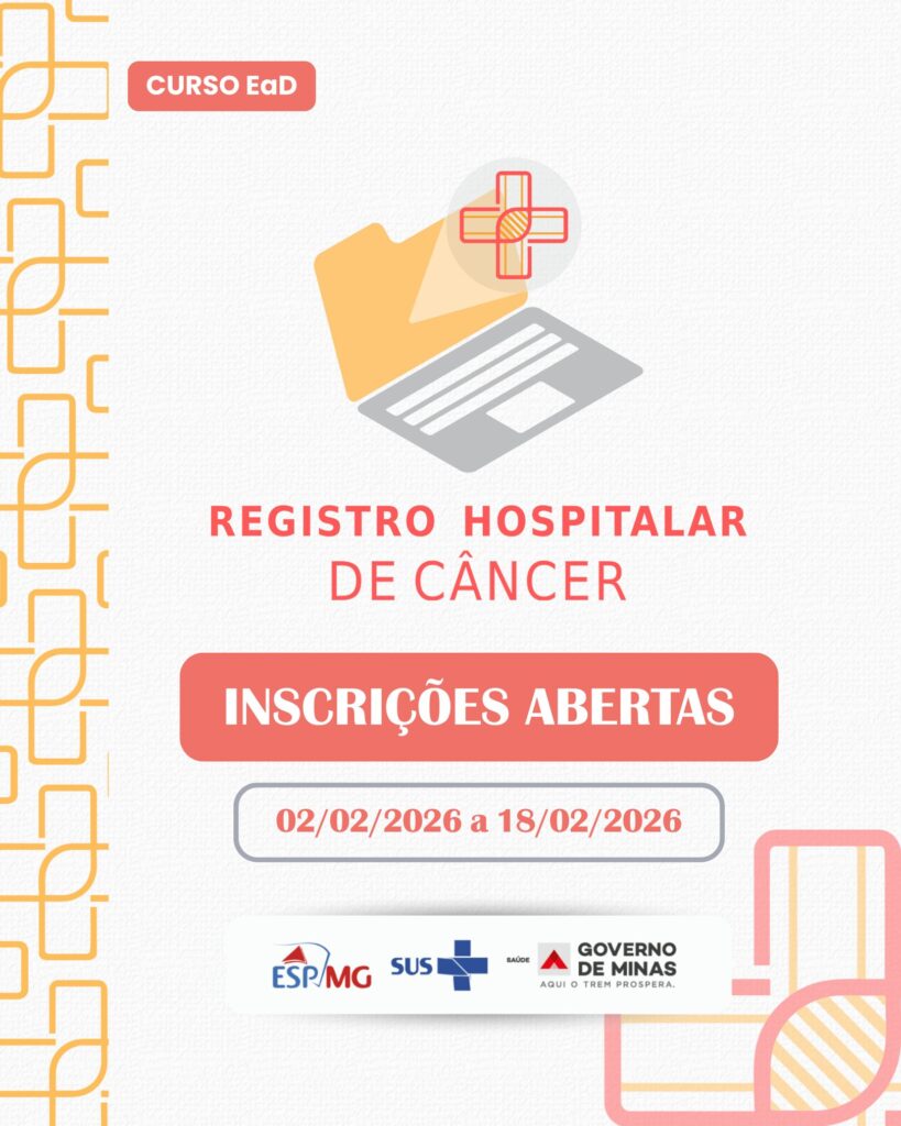 A Escola de Saúde Pública de Minas Gerais (ESP-MG), em parceria com a Secretaria de Estado de Saúde de Minas Gerais (SES-MG), abre inscrições para o “Curso Registrador Hospitalar de Câncer”. As pessoas interessadas devem se inscrever do dia 2 a 18 de fevereiro de 2026, por meio do formulário eletrônico disponível no link: https://forms.gle/NBchu9JDXfReNhcf6
